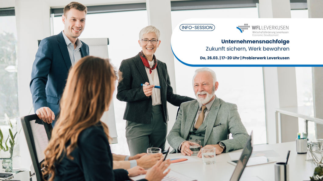 Am Donnerstag, 26.03. von 17.00 bis 20.00 Uhr greifen wir das Thema auf und veranstalten eine Info-Session im Probierwerk Leverkusen. Die Teilnehmenden erhalten einen kompakten Überblick über die wichtigsten Schritte einer erfolgreichen Unternehmensnachfolge.